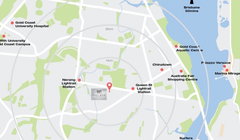 - 800 metres to either Queen St or Nerang St Light rail station